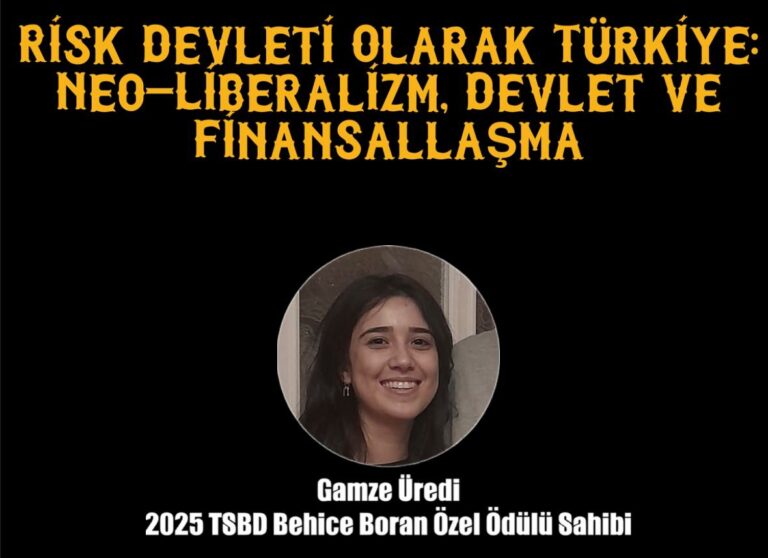 Risk Devleti Olarak Türkiye: Neo-liberalizm, Devlet ve Finansallaşma Gamze Üredi ile gerçekleştireceğimiz Çarşamba Söyleşisi’ne katılmanız dileğiyle… 17 Aralık 2025 – 17:00 TSBD, Hava Sokak 25/1 Çankaya – Ankara Zoom – Link: zoom.us/j/94153533574 Zoom – ID: 941 5353 3574 Şifre: 008225