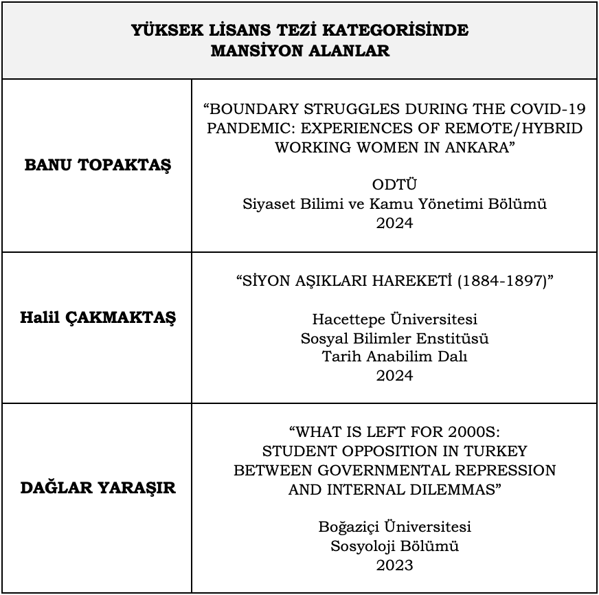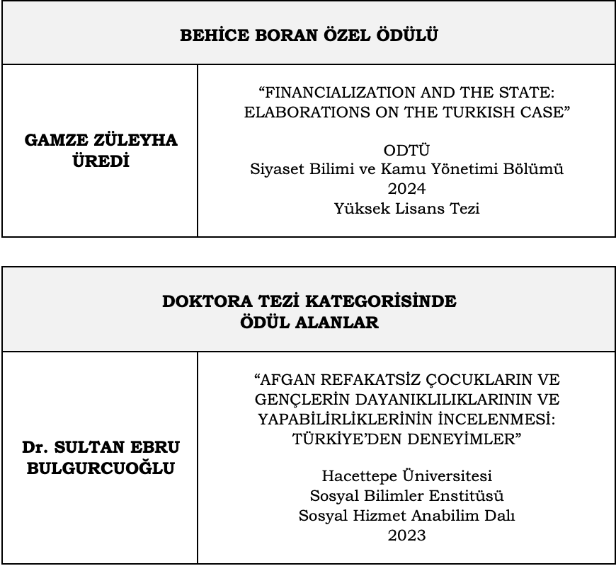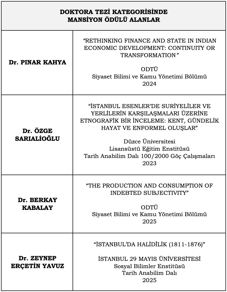 GENÇ SOSYAL BİLİMCİLER ÖDÜLLERİ – 2025 YILI SONUÇLARI